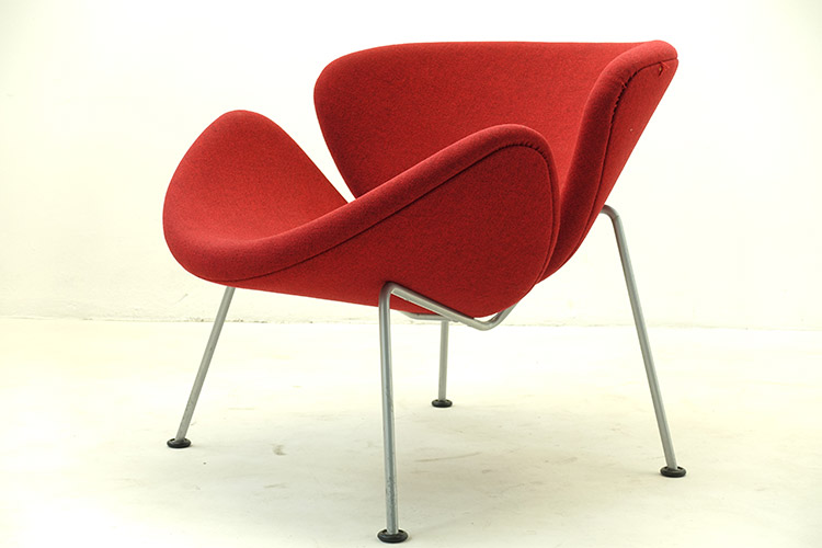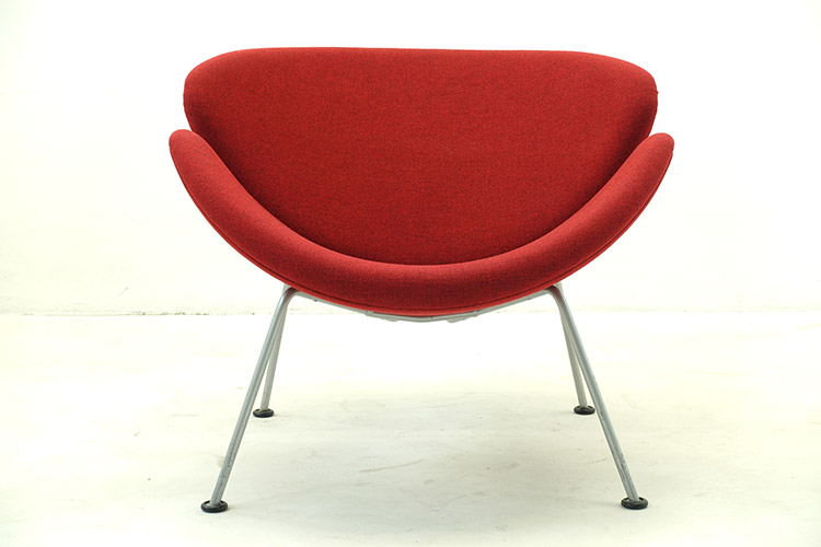red fabric, chromed metal, model "Orange Slice", designed by Pierre Paulin, Produced by Artifort, 1960's