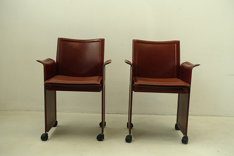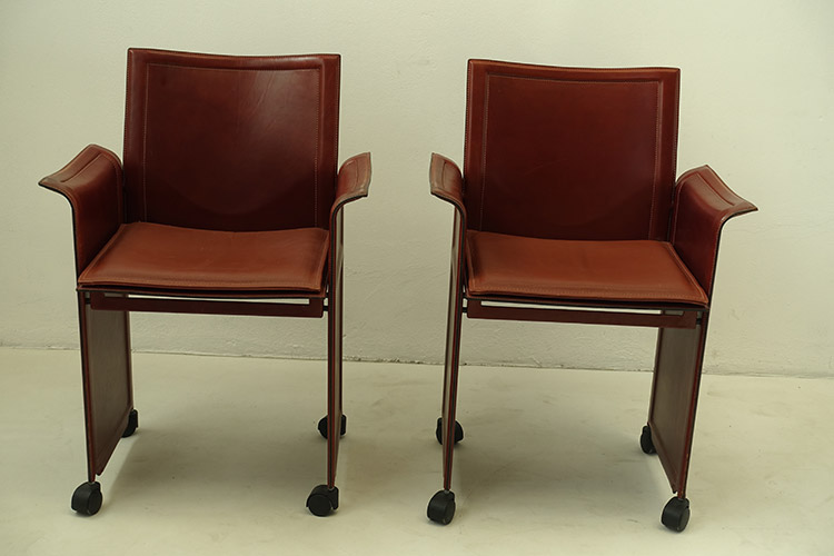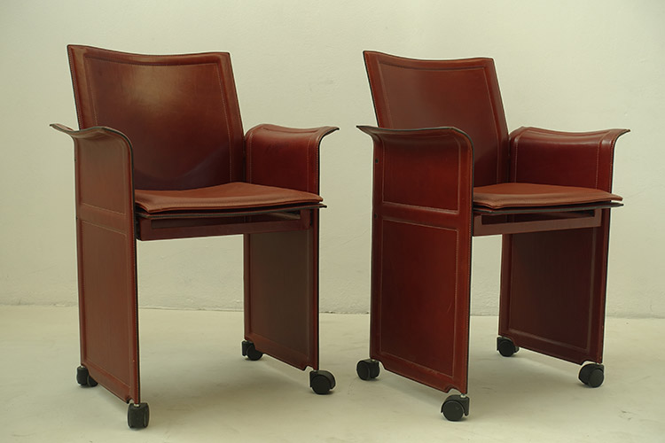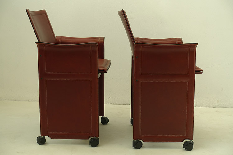 Set of Italian Leather Korium Chairs by Tito Agnoli for Matteo Grassi, Italy 1970s
