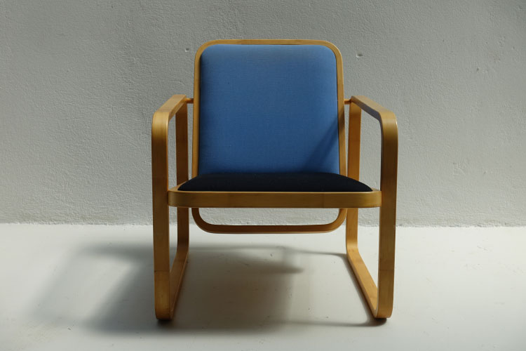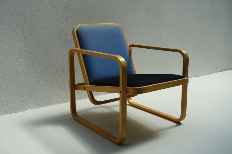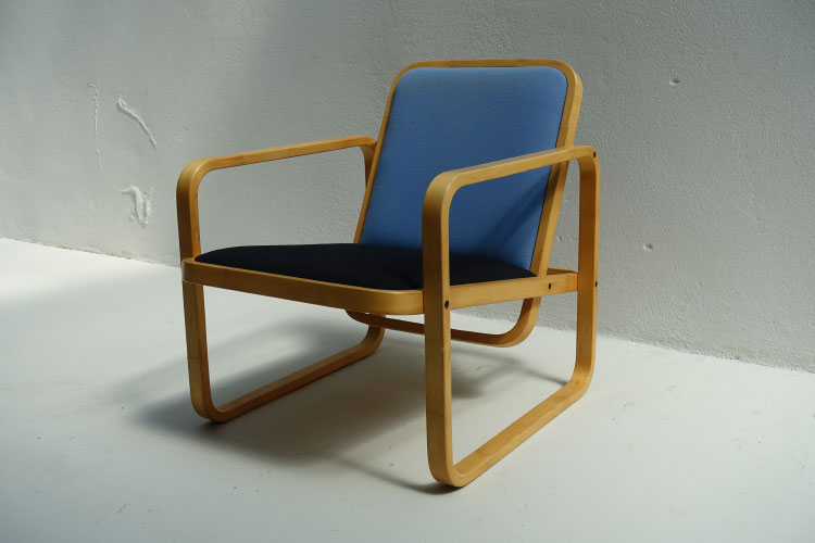 beech, blue and black fabric H. 71cm. x L. 60cm. , SH. 38cm.