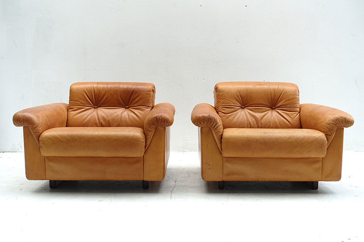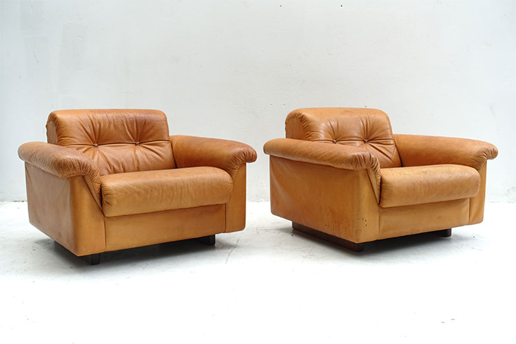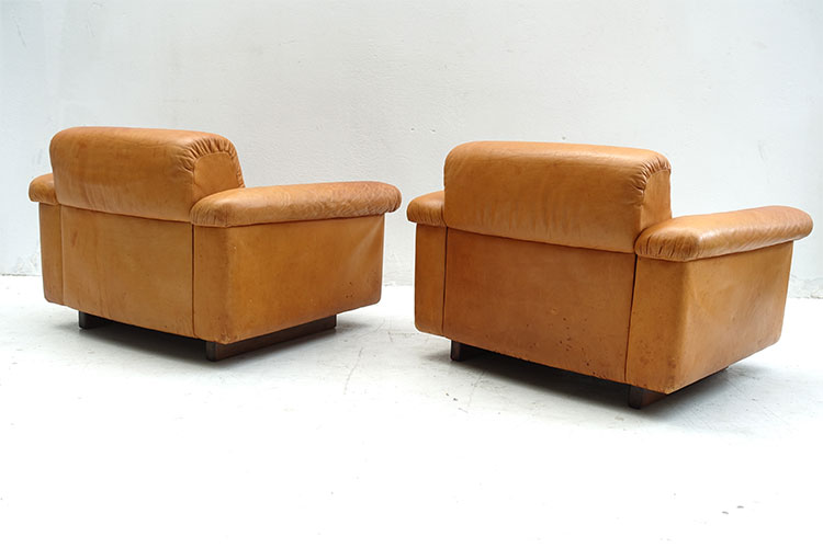 De Sede "DS-45", cognac leather (2), Switzerland 1970's 80X90X64h SH 37cm.