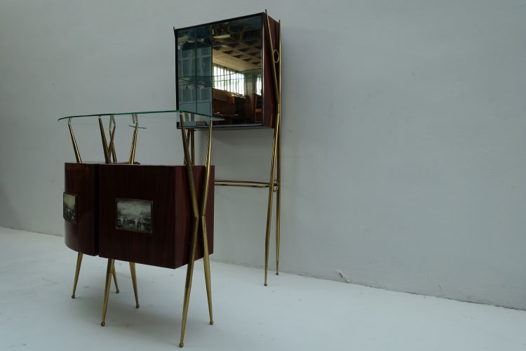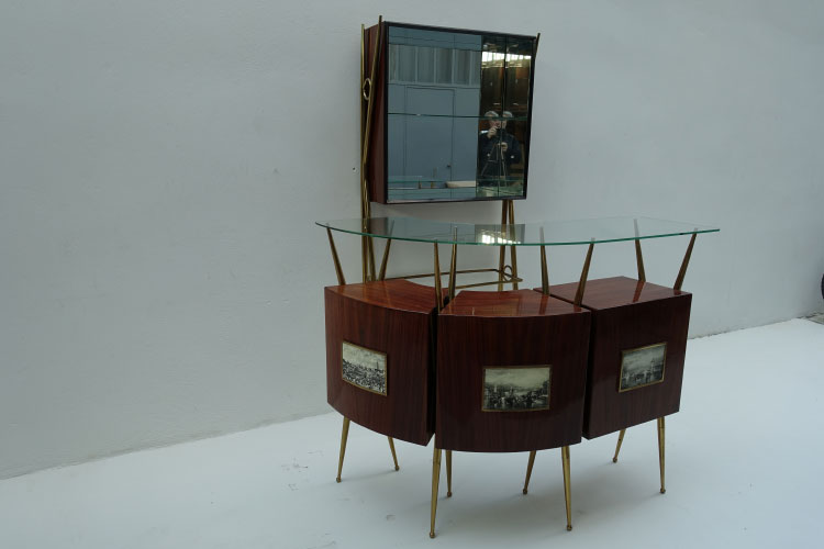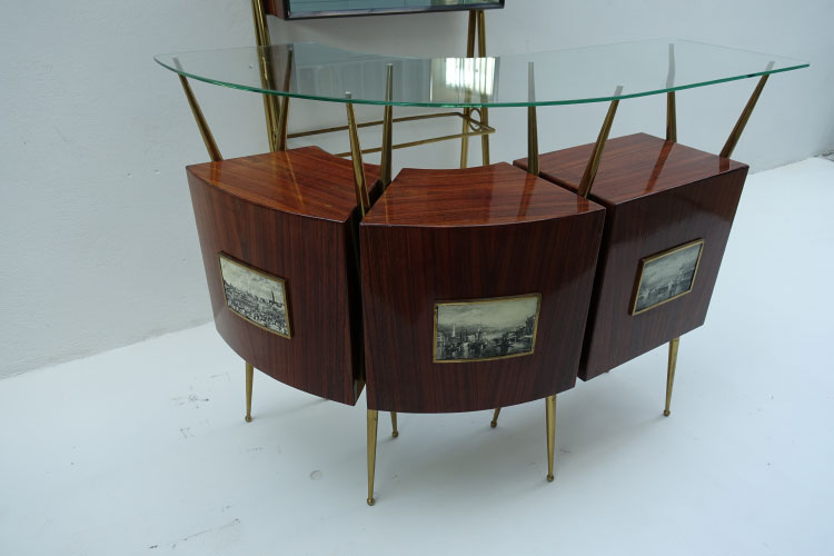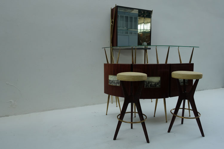 Mid-Century Italian Bar, 1950's 87 X 29 X 196h 156 X 65 X 113.5h stools 79h