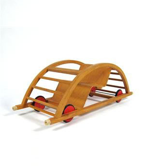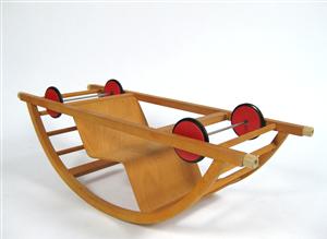 oak plywood , plastic tyres, swing cart by Hans and Erwin Andra Brockhage for Gottfries Lenz , Germany , 1950's 100 X 39 X 35h