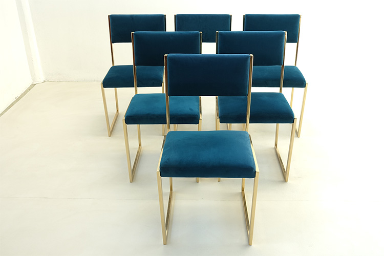 velvet, brass (6) H. 83cm SH.45.5 cm. L. 45.5 cm.