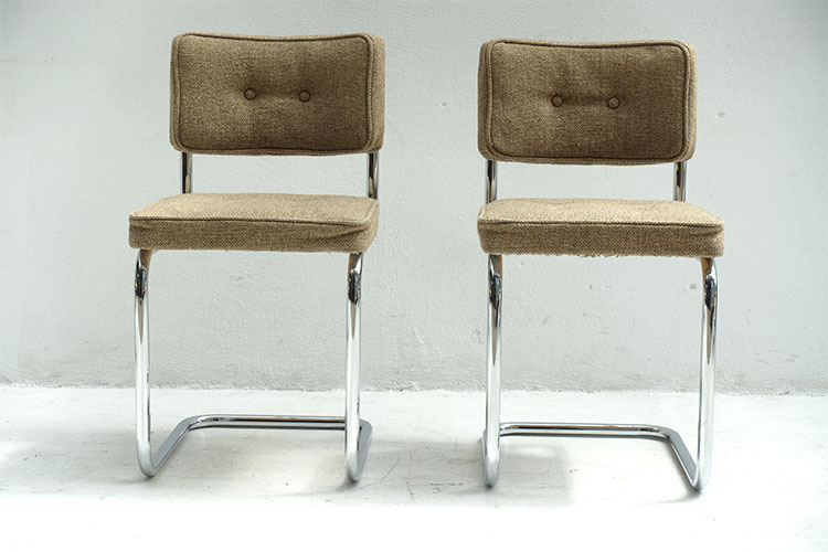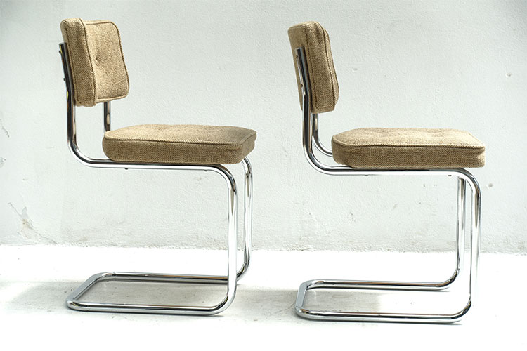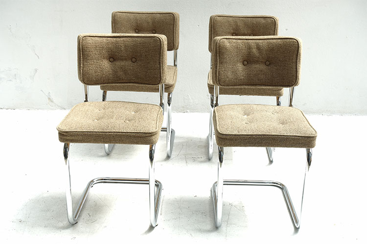 gray fabric, chrome, Belgium, 1970's H. 79 cm. , SH. 48.5 cm. , L. 40 cm.