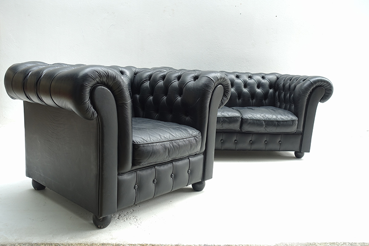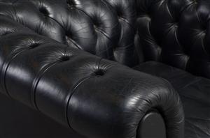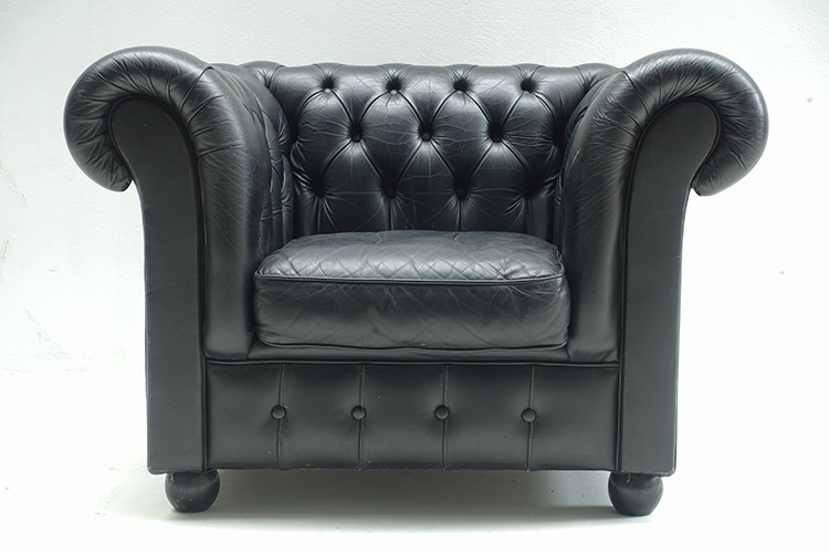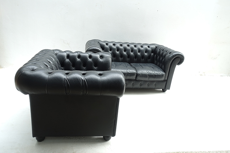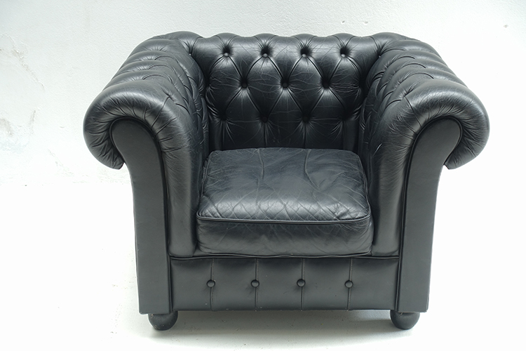 Chesterfield, black leather , Denmark 101 X 86 X 68h, SH 35 cm. (1)