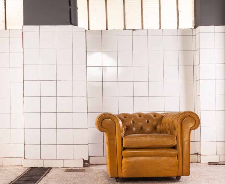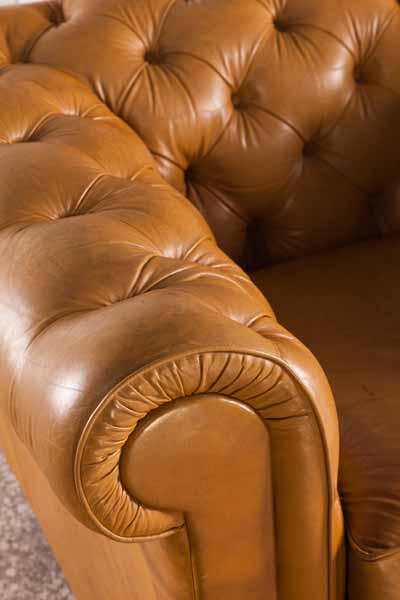 Chesterfield recliner upholstered in button sewn yellow fur, 1900