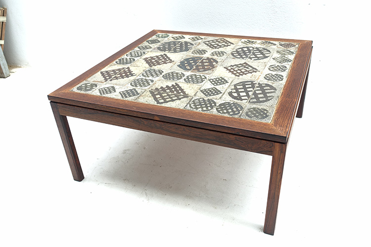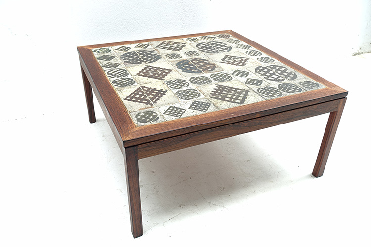 tile coffee table, oak by Tue Poulsen, Denmark 1960's 102 X 102 X 45H. cm.