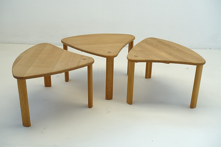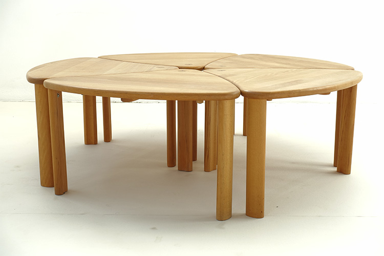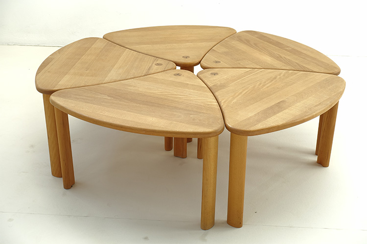 approx. Ø 132,5 cm. , H. 42,5 cm. It consist of 5 smaller coffee tables. ( approx. 60,5 X 71,5 X 42,5h )