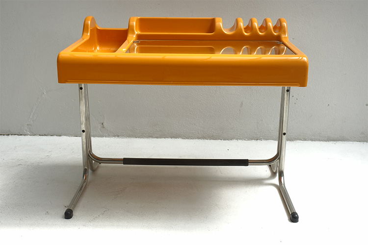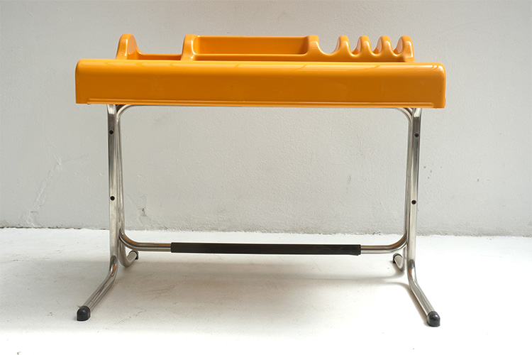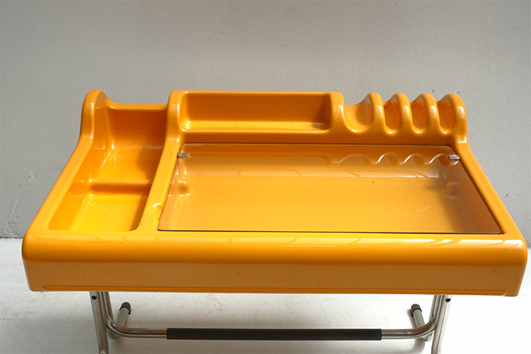 "Orix" desk, yellow molded plastic with chrome base and hinged glass writing surface, designed by Vittorio Parigi and Nani Prina for Molteni Italy, 1960's 99,5 X 63 X 74h / 82h