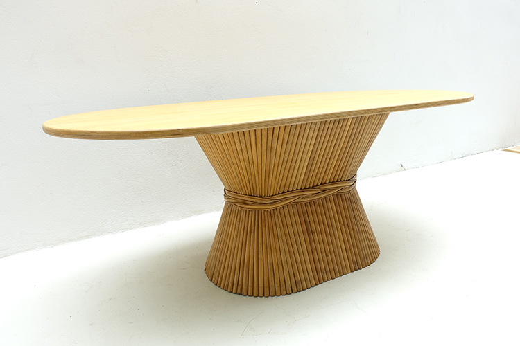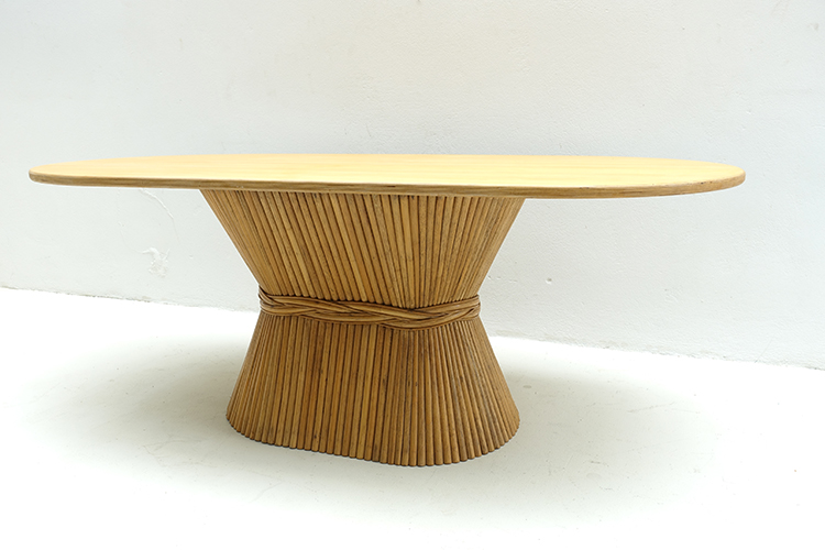 Description: McGuire Rattan Oval Bamboo Dining Table , USA 1980s W200 X D94.5 X H75.5 cm
