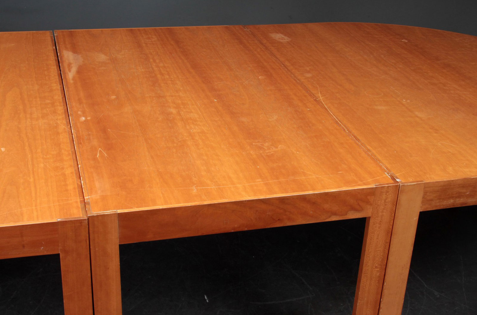 Conference table, mahogany, by Fredericia furniture rectangular table 140x75x74h two semi-circular end tables combined 204 X 140 X 74h (or 102 X 140 X 74h each). Total length 279 cm. (3)