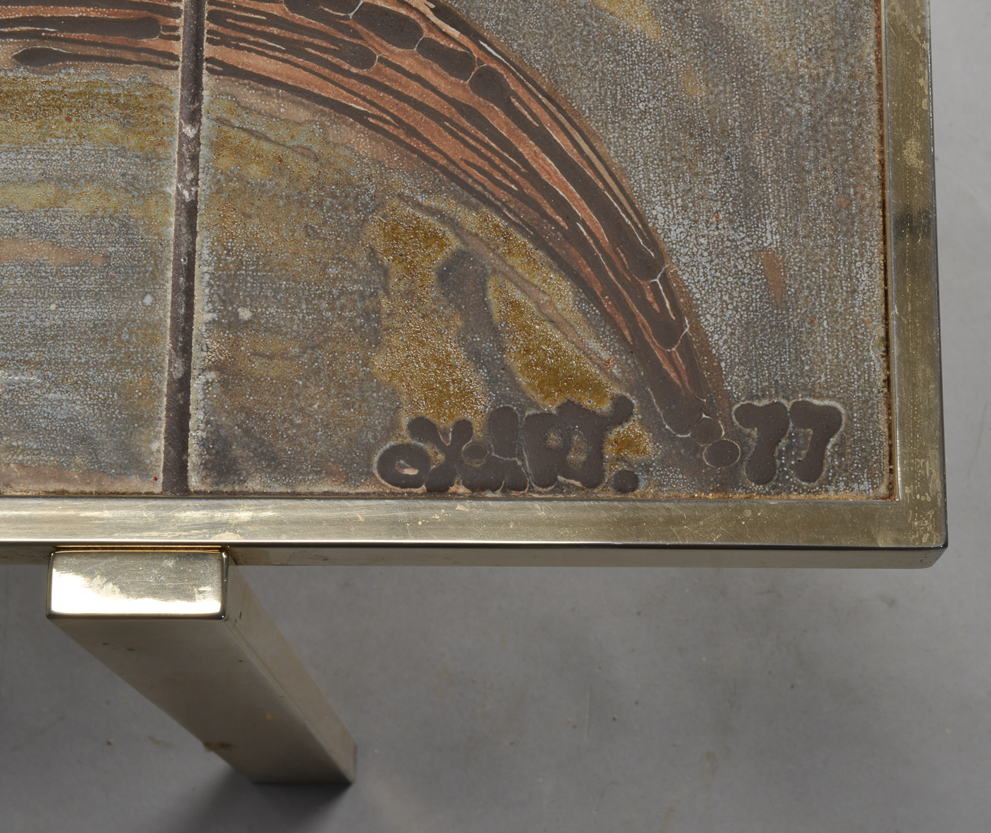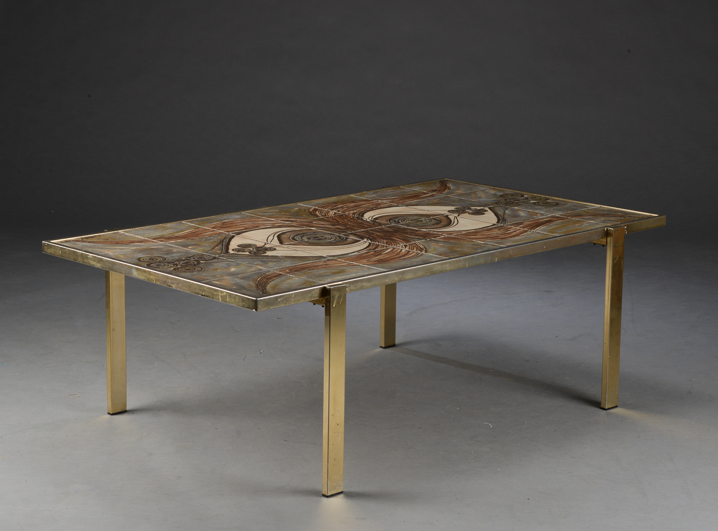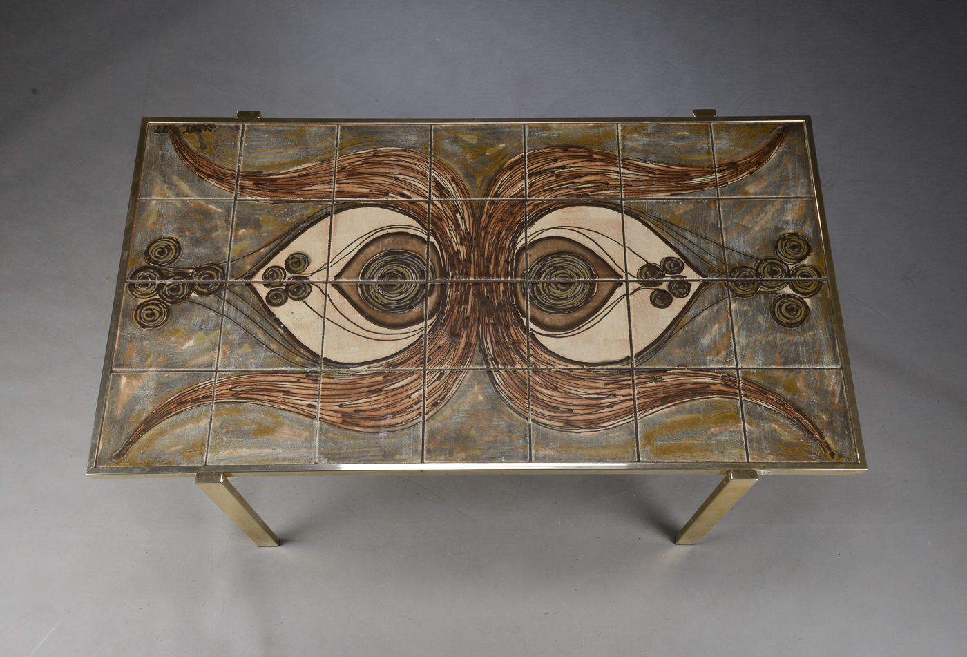 brass with ceramic tiles, 1970's 144,5X88X50h