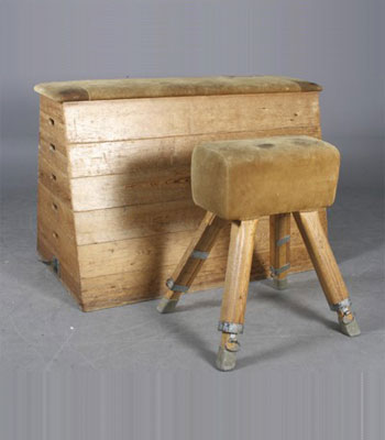 gymnastic equipment, plinth in 6 parts 155cm, and bow with adjustable legs 65cm (2)