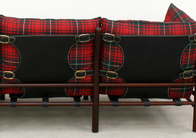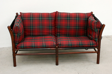 "Ilona" red fabric Two-Seat Sofa designed by Arne Norell, Sweden, 1960s beech, leather 152.4x84x73.6h sh 40.6 cm