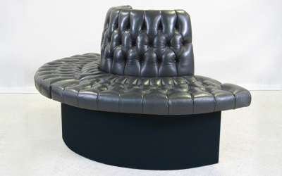 Round hotel lobby black leather sofa 160cm