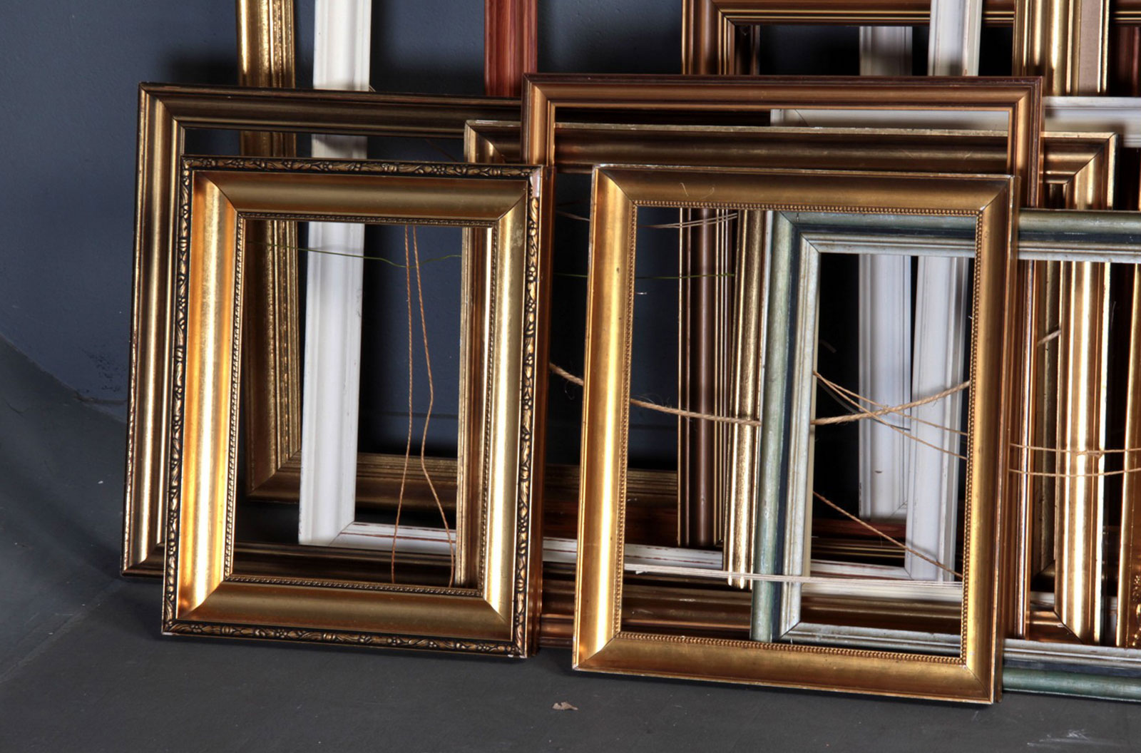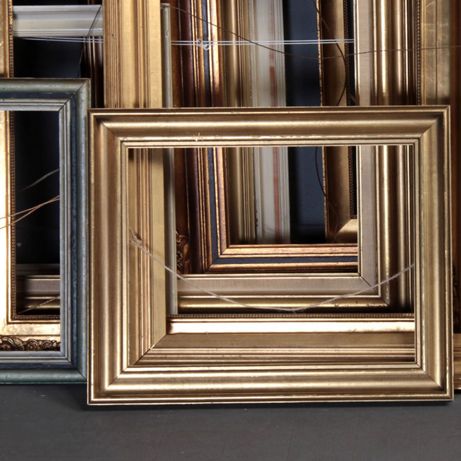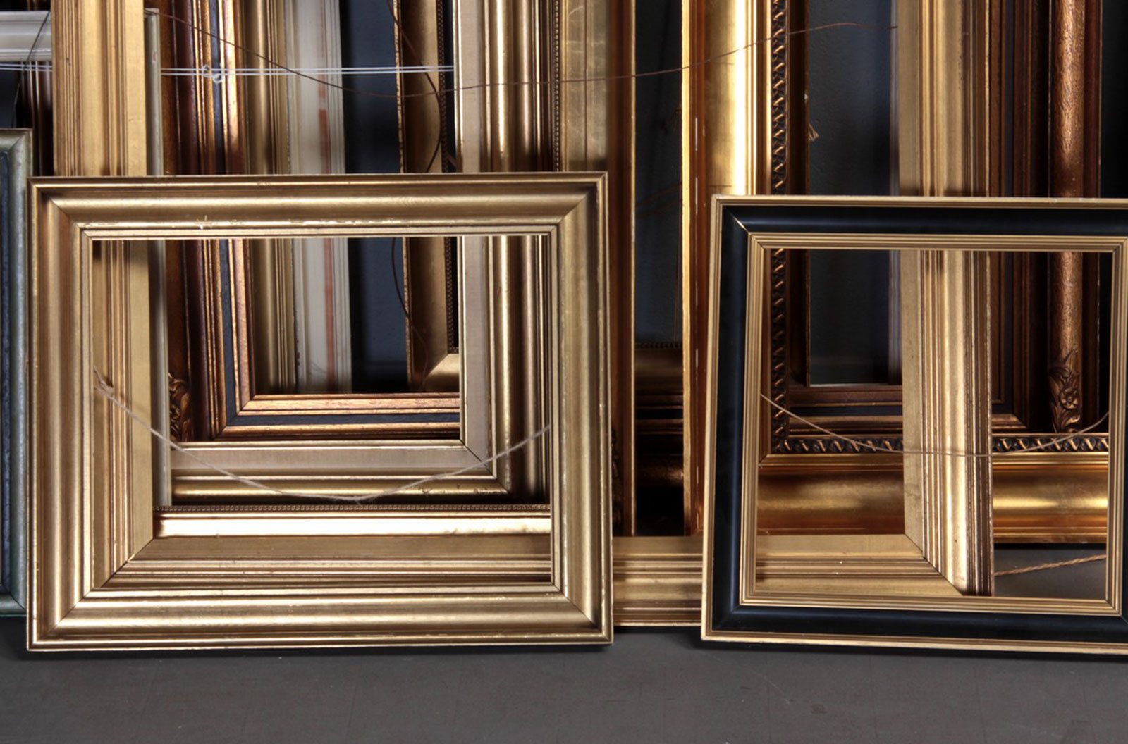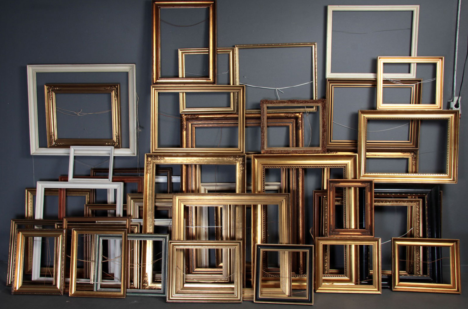 Large collection of large and small frames, gold, black and white painted wood. Different sizes from approx. 30.5 x 38 cm. to 142 x 103 cm. (60)