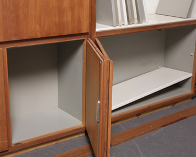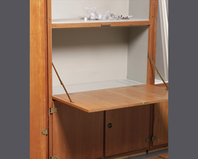 oregon pine and fiber wall unit, designed by Mogensen & Grethe Meyer, 1958 Denmark, 102x35x200h