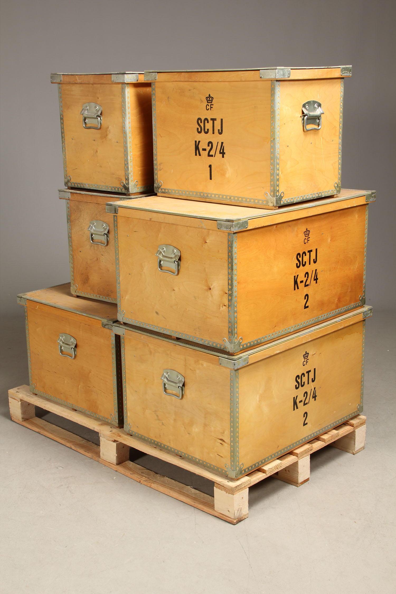 Plywood boxes (6) large boxes 81,5X61,5X45h small boxes 61,5X42X44h
