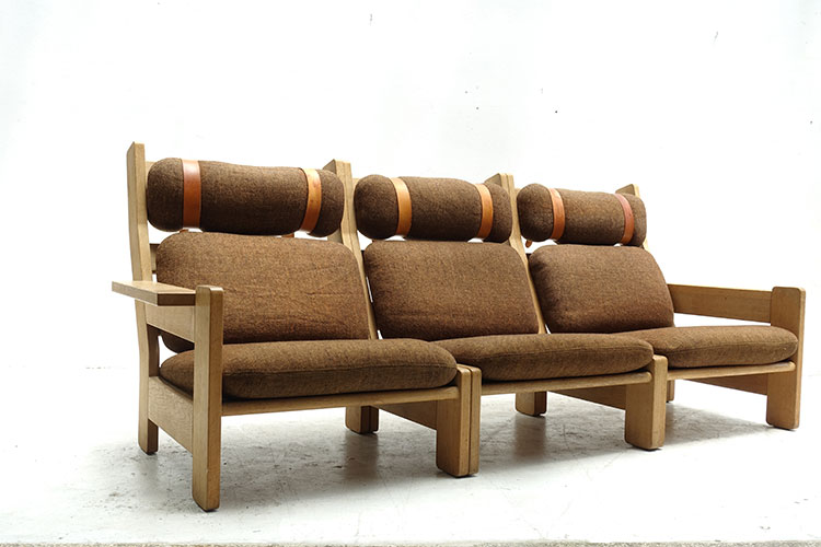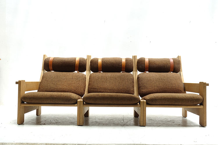 3-seater modular brown wool fabric sofa, Denmark 1960's 215x84x93h
