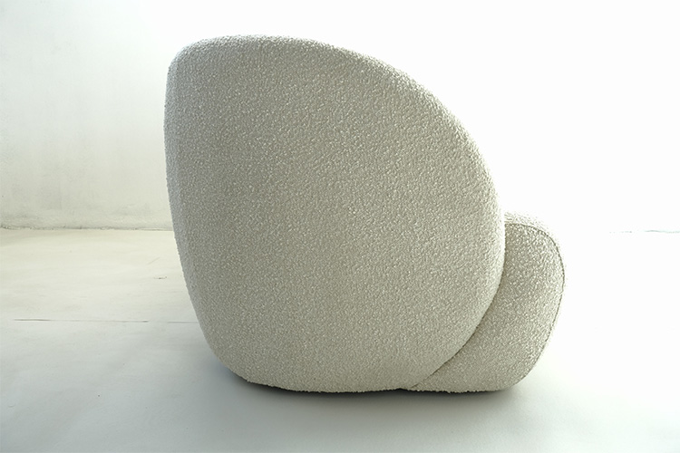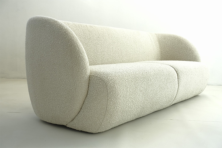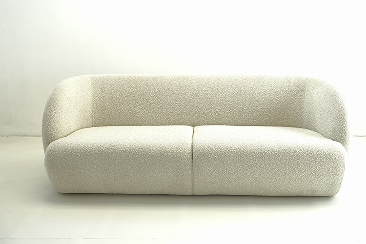 boucle curved sofa, 217 X 90 X 76h SH 40 cm.