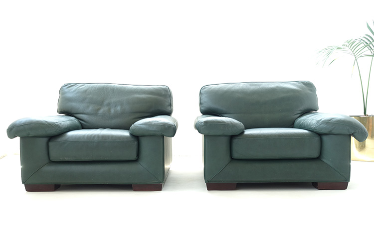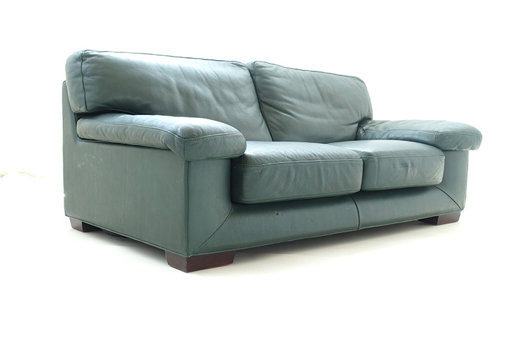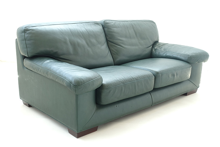 dark green leather, two seater sofa (set sofa & 2 armchairs) , Roche Bobois L. approx. 190cm.