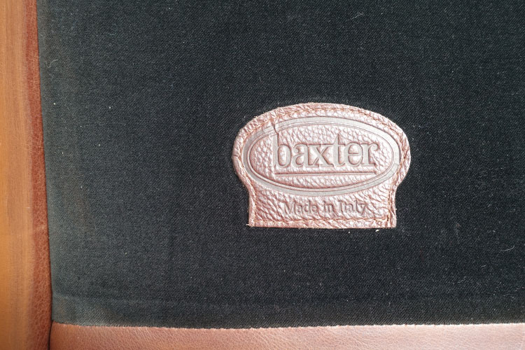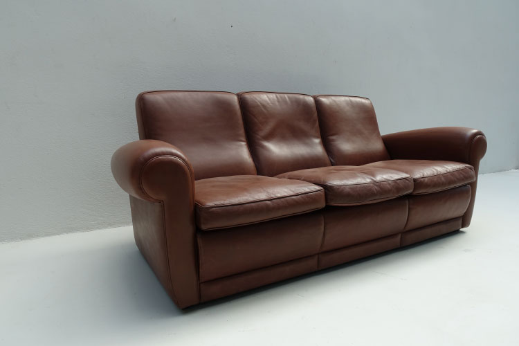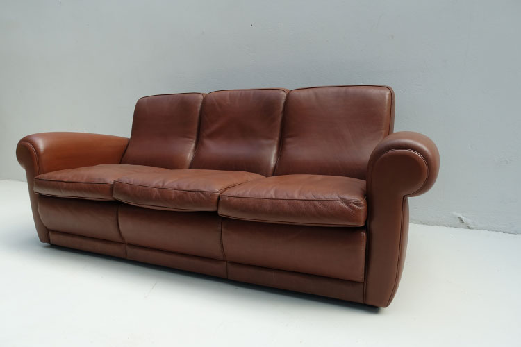 three-seater sofa, patinated leather, by Baxter, Italy L. 210cm. x D. 90cm. SH. 45cm.