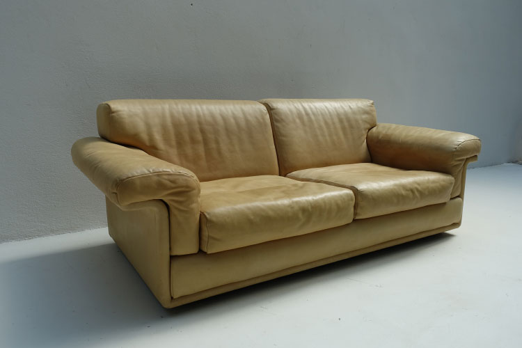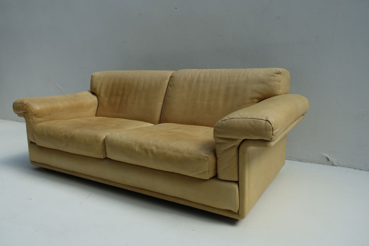 sand coloured leather sofa, by De Sede, Switzerland (2 sofas, 1 armchair) L. 200cm. x D. 100cm. x H. 74cm