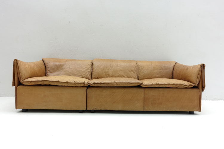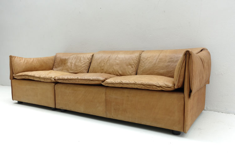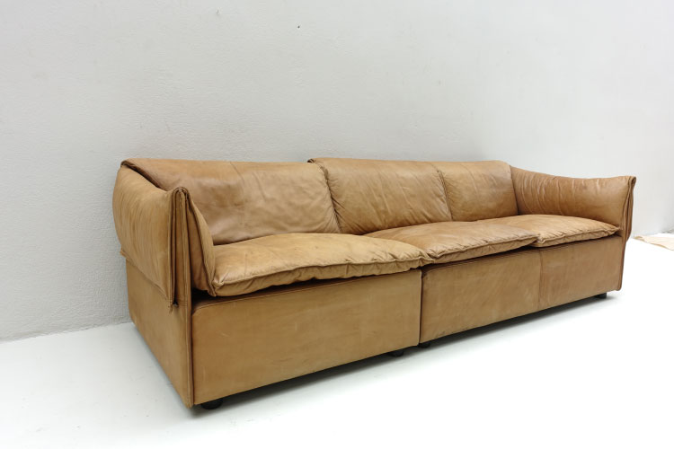 cognac leather, 3 seater sofa L. 224cm. X H. 66cm. X D.82cm. SH 39 cm.