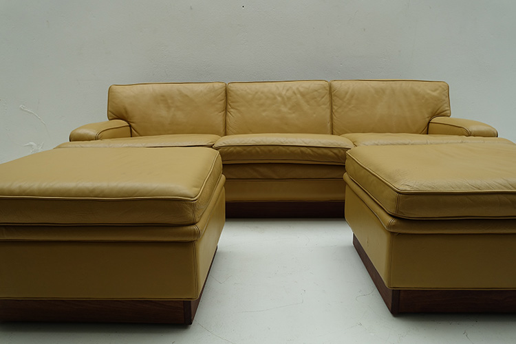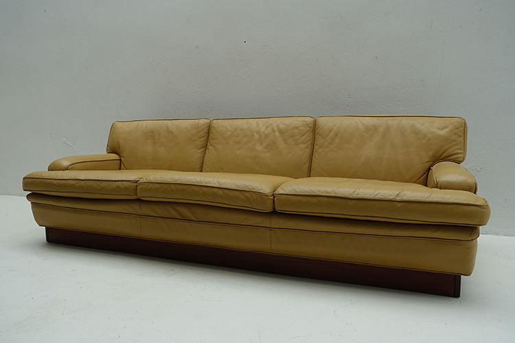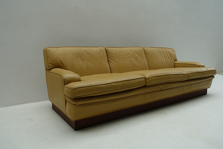 3-Seater Leather Sofa and two leather footstools by Arne Norell, Sweden 1960. 240x99x67h
