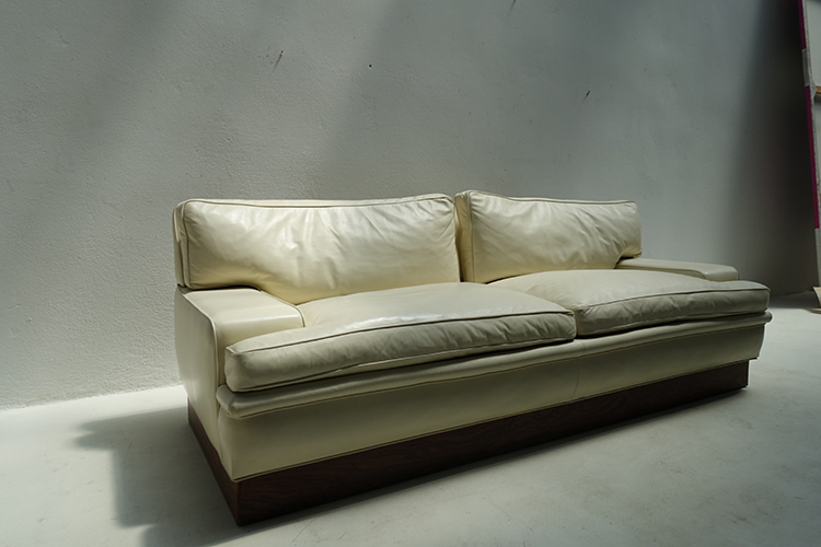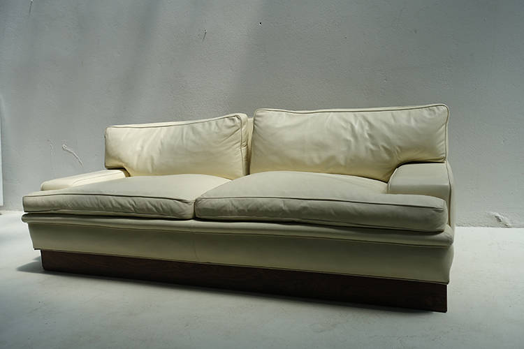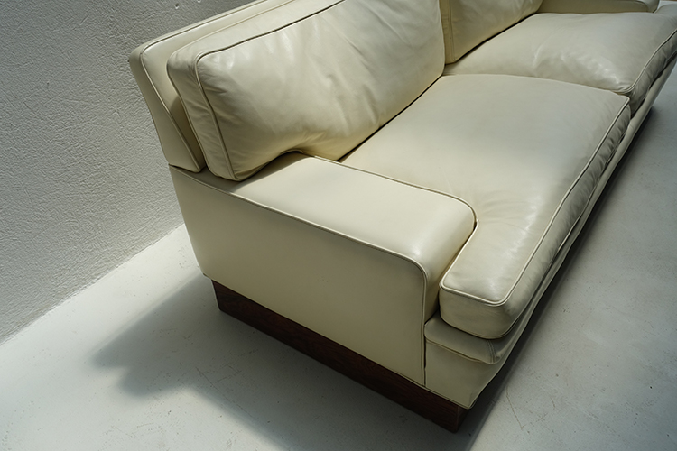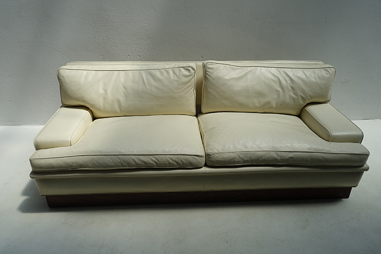off-white leather , Down-filled cushions , Denmark , 1970 200x85x70h