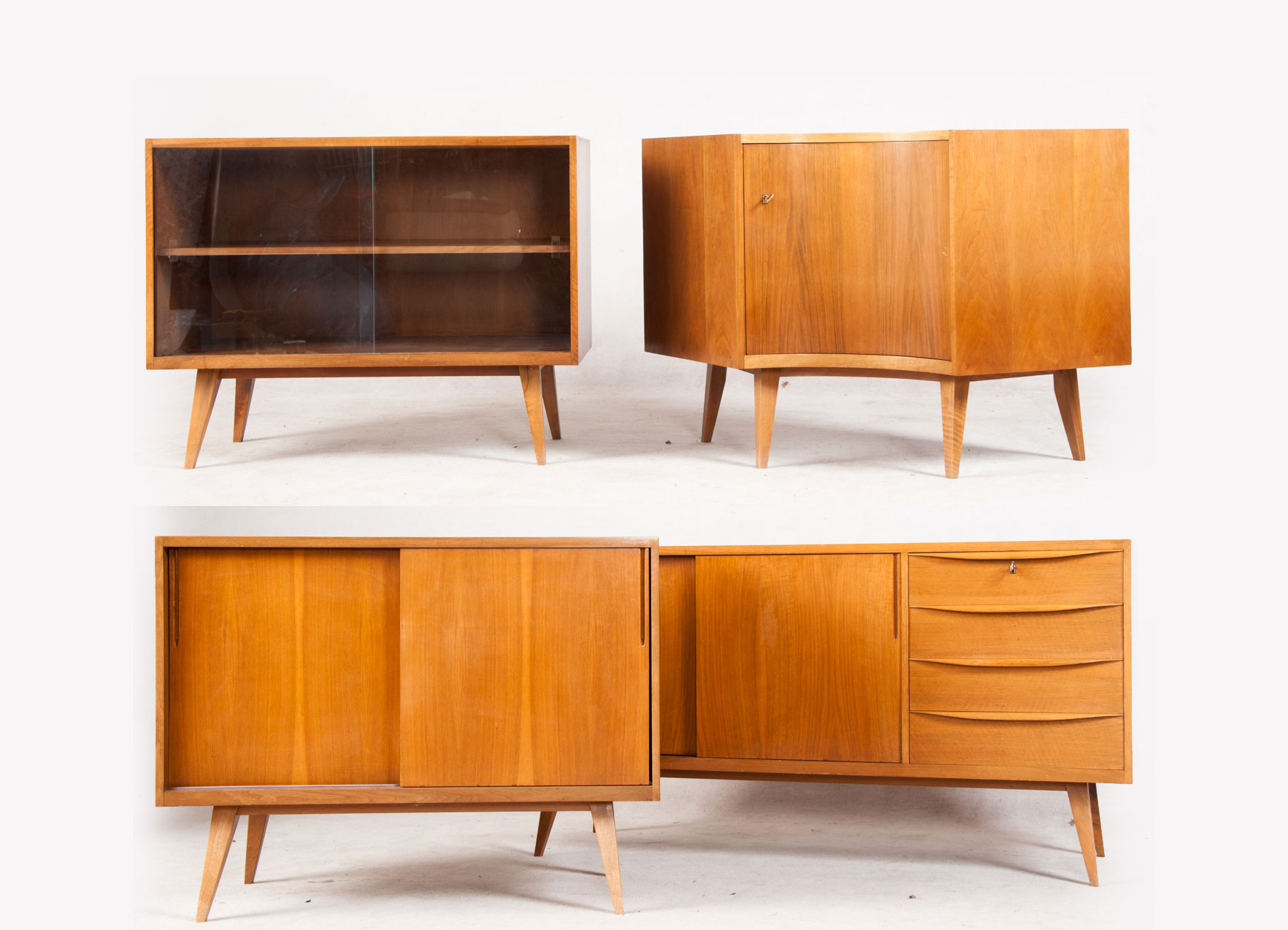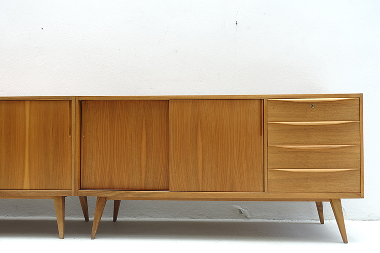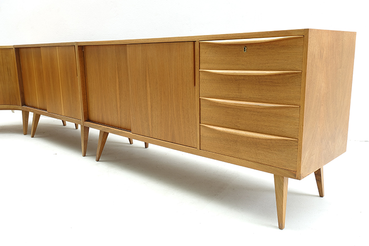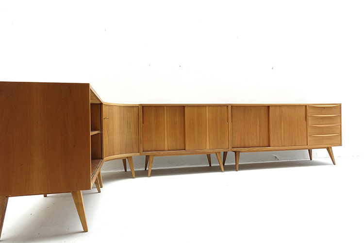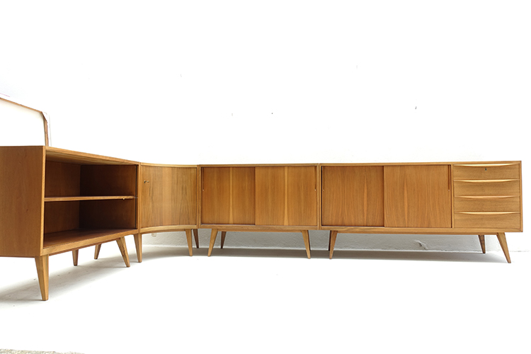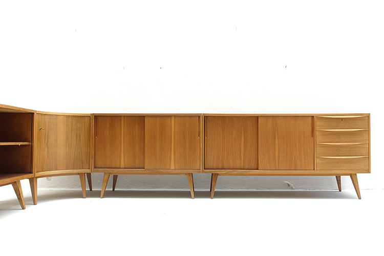 Designed by Franz Ehrlich, Germany 1950’s (4 pieces) 100 X 48 X 77,5h cm ( 2 ) 150,5 X 48 X 77,5h cm ( 1 ) 83 X 83 X 77,5h cm. ( corner )