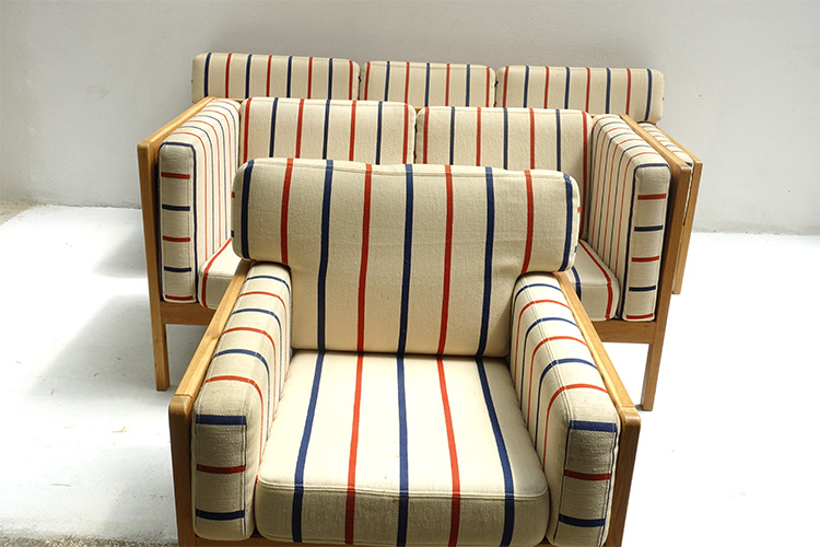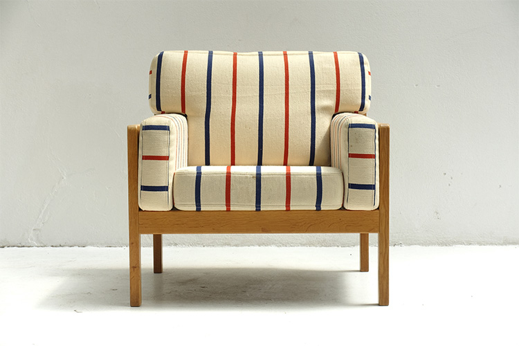 oak frame, striped fabric, by Erik Ole Jørgensen, Denmark