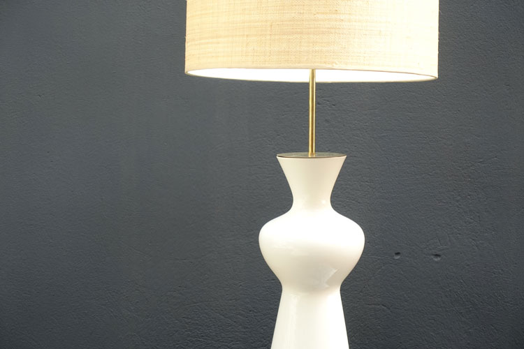 White Ceramic Table Lamp ceramic, brass H. 87.5 cm ∅ 17.5 cm