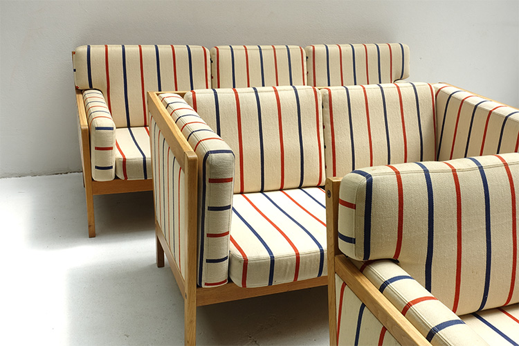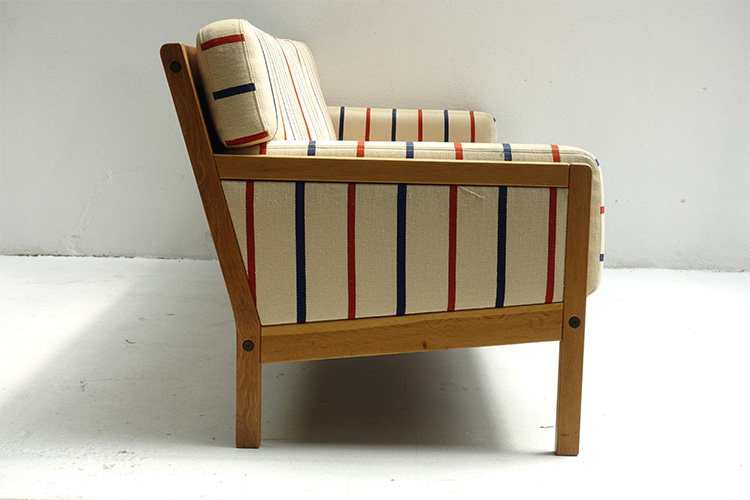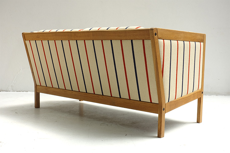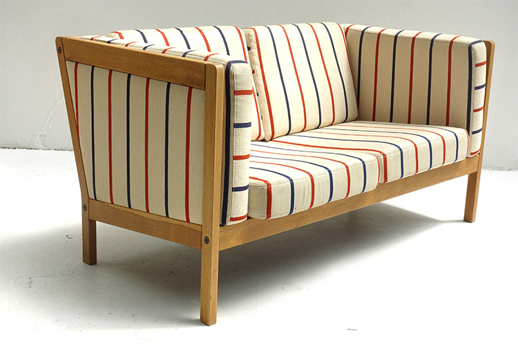 Oak, striped fabric, by Erik Ole Jørgensen, Denmark 1970's. (3) 144 X 80 x 76h, SH. 38 cm. Save
