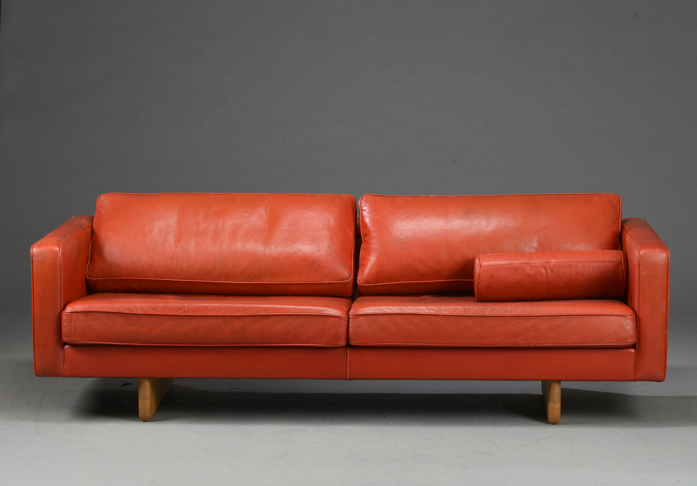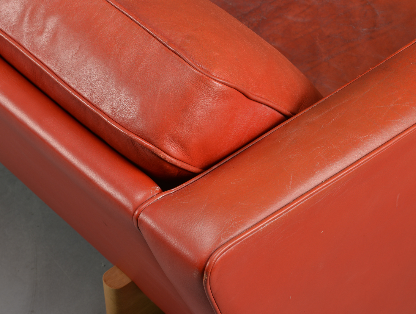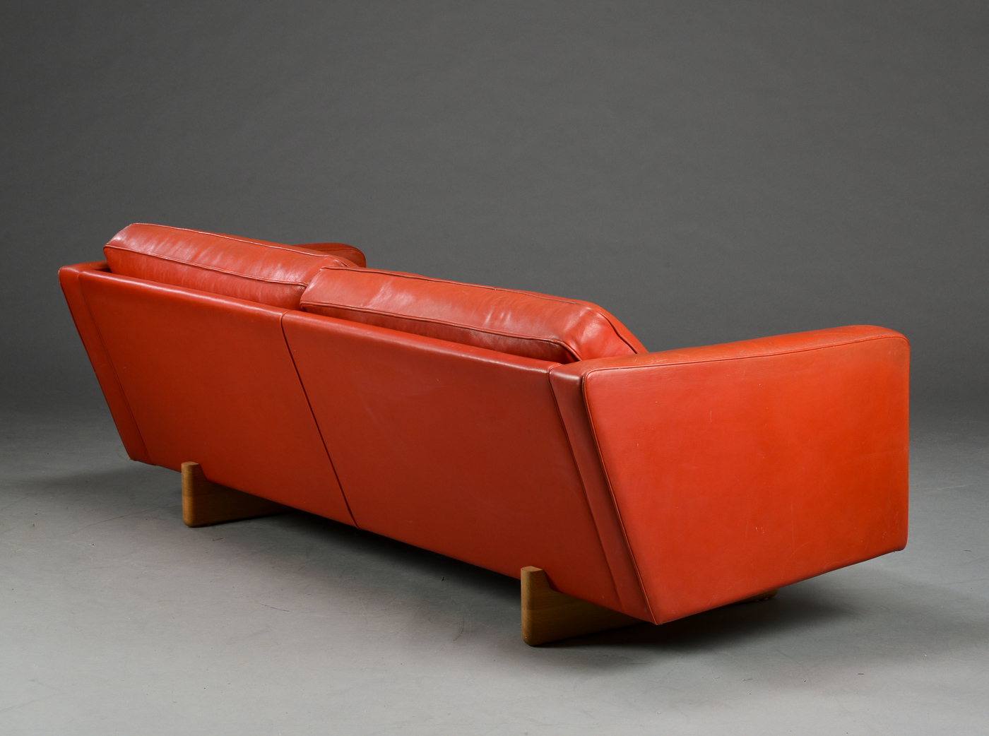 red leather, oak frame, by Fredericia Furniture L. 212 cm.